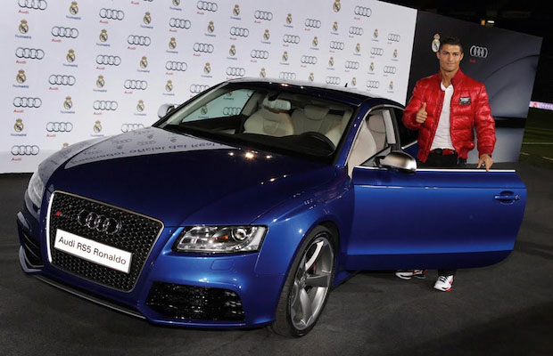 Dar, Ronaldo nu a trebuit sa plateasca intotdeauna pentru masini. Faptul ca sponsorul principal al celor de la Real este Audi creaza avantaje si pentru jucatori, astfel, la aniversarea a 10 ani de colaborare, Ronaldo si-a ales un Audi RS6 Avant.