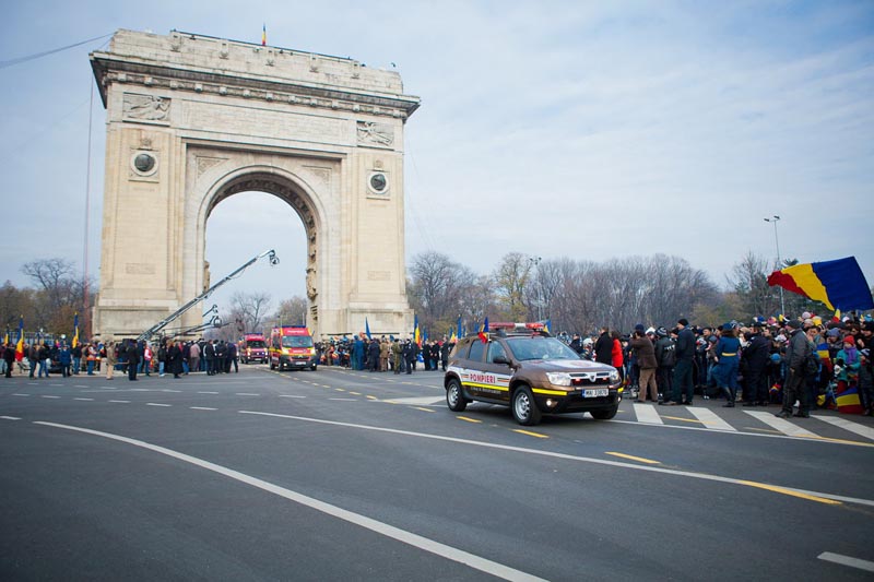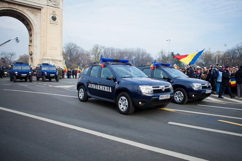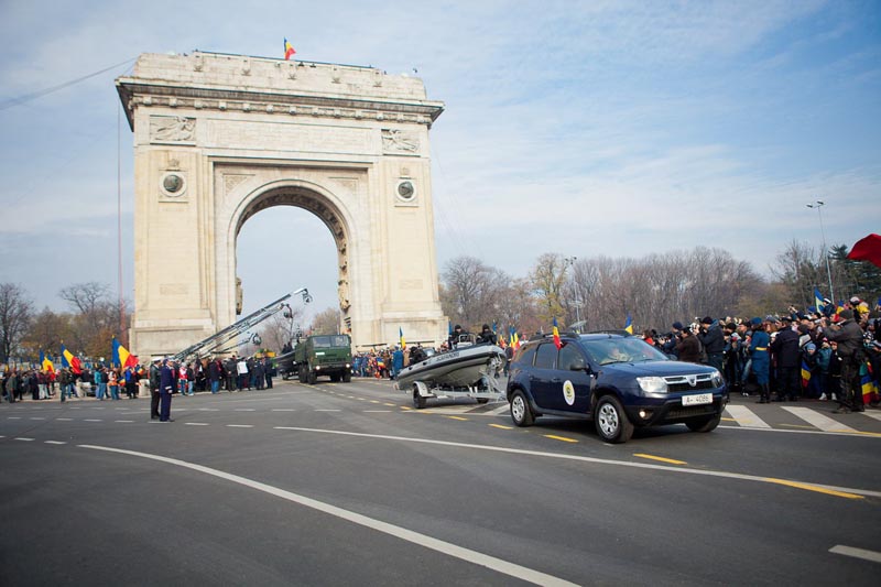 Prin faţa publicului prezent la Parada Militară din Bucureşti, organizată cu ocazia Zilei Naţionale a României, a defilat o formaţie de şase autovehicule Dacia Duster aflate în dotarea Ministerului Apărării Naţionale (MAPN).