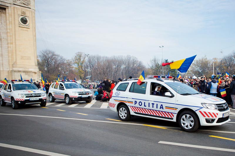 Maşinile acestei instituţii beneficiază de dotări specifice activităţii de poliţie (rampă semnalizare cu difuzor încorporat, sirenă, lămpi flash în grila de radiator, inscripţionare). În cadrul aceluiaşi eveniment, modelul Dacia Duster s-a făcut în egală măsură remarcat şi în momentul defilării trupelor Inspectoratului pentru Situaţii de Urgenţă (ISU). Printre celelalte instituţii care mai au în dotare modele Dacia se mai numără Poliţia de Frontieră sau Pompierii.