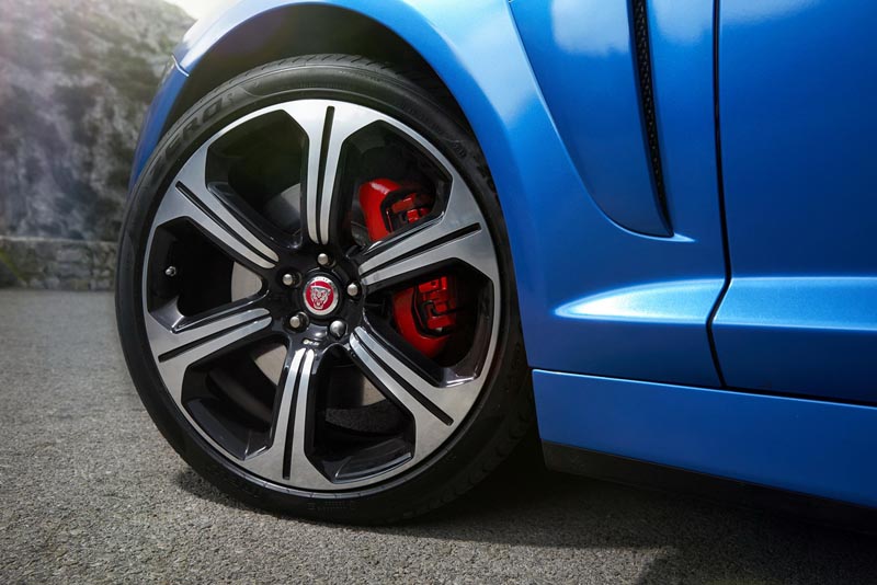 Caracterul sportiv al maşinii este dat şi de jantele de 20 de inch luate de pe versiunea sedan, de spoiler-ul pentru plafon sau inserţiile de fibră de carbon pe bările faţă şi spate. Pentru a face faţă greutăţii suplimentare, Jaguar a revizuit suspensia spate, modificând arcurile şi setarea amortizoarelor. De asemenea, diferenţialul electronic activ şi setările pentru controlul stabilităţii au fost îmbunătăţite.