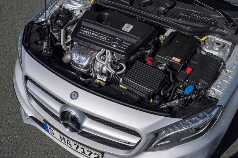 Aşa cum era de aşteptat, SUV-ul compact GLA45 AMG foloseşte acelaşi motor turbo de 2 litri prezent şi şi pe versiunile Mercedes-Benz A45 AMG şi Mercedes-Benz CLA45 AMG. Motorul este capabil să dezvolte 360 de cai putere şi oferă un cuplu de 450 Nm. Împreună cu o cutie de viteze AMG SPEEDSHIFT DCT, cu dublu-ambreiaj şi sistemul de tracţiune integrală 4-Matic modificat special pentru versiunea AMG, maşina este capabilă să atingă 100 km/h în 4.8 secunde şi are o viteză de top, limitată electronic, de 250 km/h.