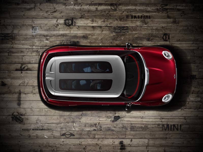 Mini Clubman Concept este primul Mini care va fi echipat cu aşa-numitele AirBreather pe părţile laterale. AirBreather evocă tema de design a AirCurtains din bara faţă, fiind tăiate dinamic în contururile Black Band. Spoilerul dublu de acoperiş, elaborat şi dispus în spate, îşi prezintă avantajele atunci când este privit de sus. A treia lumină de frână este integrată între cele două aripi ale spoilerului de pe acoperiş, în stilul Formulei 1. De asemenea, există două secţiuni longitudinale de plexiglas, dispuse pe întreaga lungime a acoperişului, asemenea benzilor din raliuri. În combinaţie cu spoilerul de pe acoperiş, acestea permit ca aerul dinamic specific MINI să se regăsească şi la MINI Clubman Concept când este privit dintr-o perspectivă panoramică.