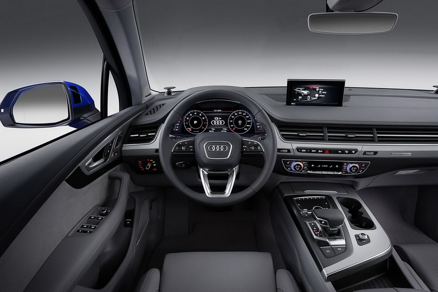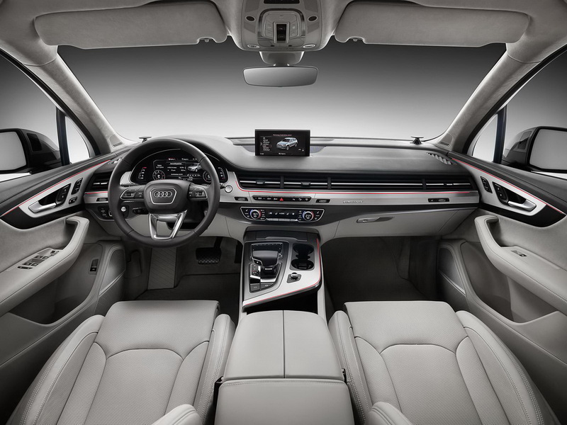 A doua generație a lui Audi Q7 vine și cu un interior nou. Bordul este mai puțin aglomerat, grație eliminării unor butoane și integrarea funcțiilor lor în noul touchpad. Nici pasagerii din spate nu au fost uitați, aceștia având la dispoziție, în funcție de gradul de dotare al mașinii, una sau două tablete de 10.1 inch, care beneficiază de un procesor Nvidia Tegra 4, cameră full HD, 32 de GB memorie internă, Bluetooth și NFC. Printre alte dotări, noul Audi Q7 mai vine cu Google Android Auto, Apple CarPlay, un sistem audio Bose cu sunet 3D, sau opțional, cu unul mai scump Bang & Olufsen, cu 23 de boxe și o putere de 1.920 de wați.